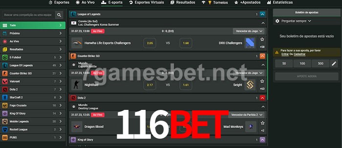 O 116bet oferece uma grande seleção de opções de apostas em e-sports com probabilidades competitivas